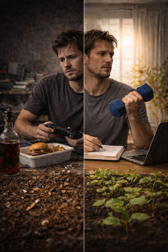 Tudo que está acontecendo hoje na sua vida é fruto dos hábitos e escolhas que você plantou ao longo dos últimos anos. Não é só “ansiedade”, não é só “fase”. É rotina, é padrão repetido.